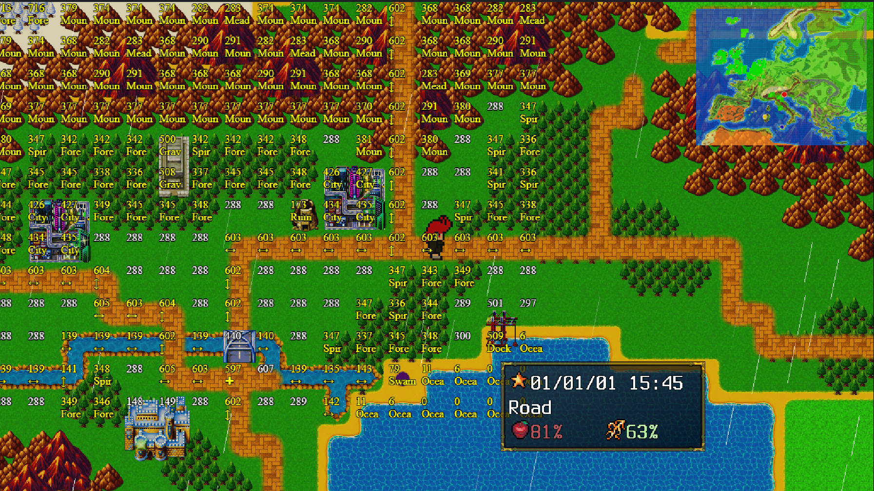Working now on adding the road system to the world, based on autotile placement on world map it autodetermines road directions and junctions, it also places gas stations and random structures along the road.