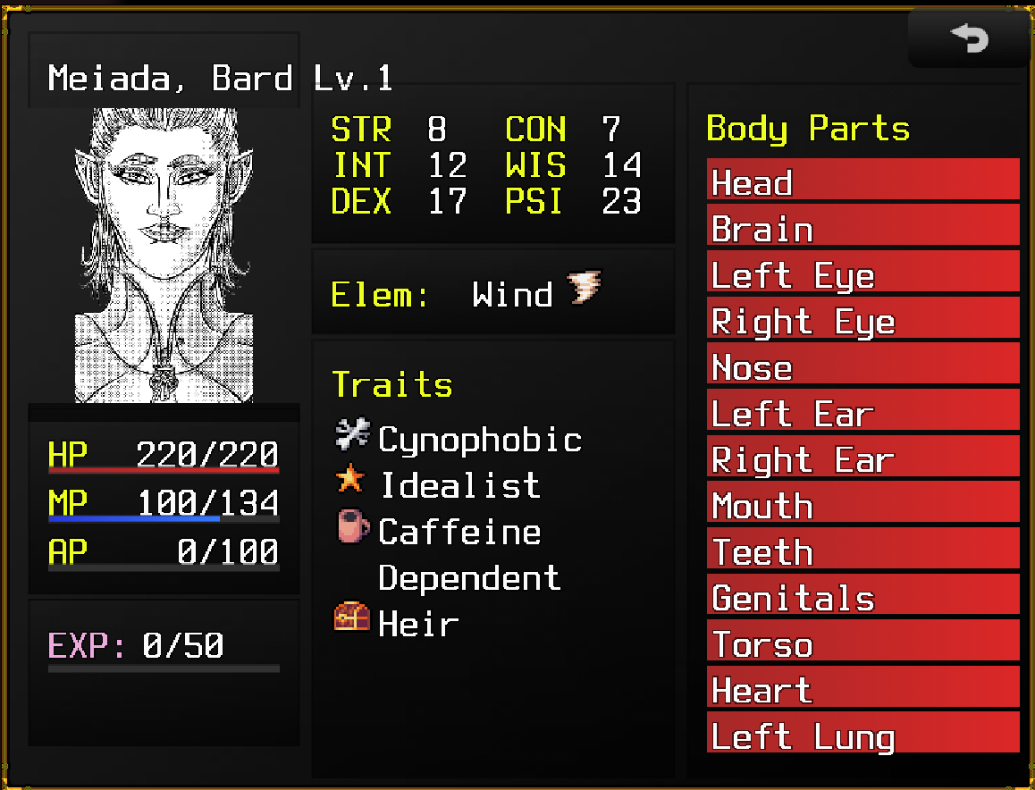 For now traits just give bonuses and maluses to stats but i want them to affect heavily gameplay and force the player to roleplay.